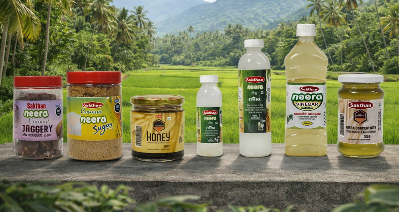 Every Sakthan Neera product begins with pure, unrefined ingredients drawn from Kerala’s coconut trees and natural bounty—free from chemicals, full of goodness.
